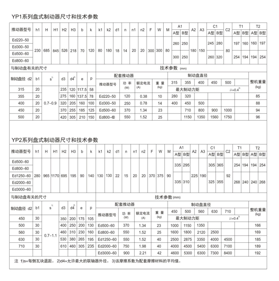 電力液壓盤式制動(dòng)器符合DIN15435標(biāo)準(zhǔn)和JB/T7020-2006標(biāo)準(zhǔn)。配套符合DIN15430標(biāo)準(zhǔn)的Ed系列推動(dòng)器。