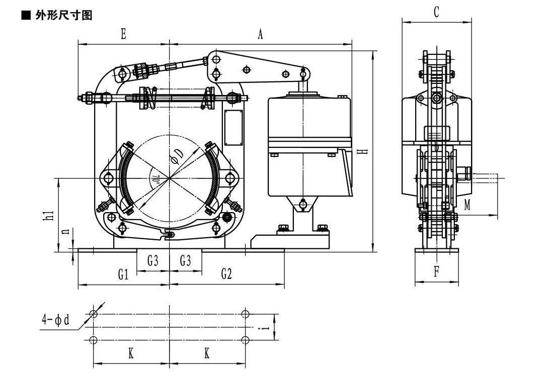 ▲ 常閉式設(shè)計(jì),(斷電)彈簧制動,(通電)推動器釋放。